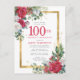 Cartão Postal De Convite Rosa vermelha Dourada Holly 100º Aniversário