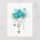 Cartão Postal De Convite Rosas Turquesas com Chaves