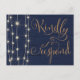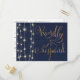 Adicione este design inspirado em madeira rústica e luzes de corda à sua papelaria de casamento. Tipografia cursiva elegante e romântica em dourado falso sobre um fundo azul-marinho. Personalize com facilidade.
