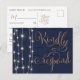 Cartão Postal De Convite RSVP de casamento azul e dourado rústico