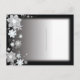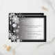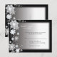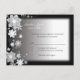 Flores brancas e bonitas tecidos brancas + flocos de neve brancos e espirais + fundo preto e cinza desenhado em Cartões-postais RSVP de Casamento personalizados. Design floral único e elegante perfeito para um CASAMENTO NO INVERNO | CASAMENTO NEGRO E BRANCO ou CASAMENTO MARÍTIMO BRANCO ((Você pode encontrar os essenciais de casamento e favores nesta loja, Bridal Heaven. Entre em contato com ujean4791@gmail.com para obter trabalho personalizado e/ou coordenar papelaria de casamento.)