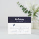 Este cartão de resposta é perfeito para um evento ao ar livre sob o céu noturno estrelado. Um bonito céu noturno celeste e uma adorável carta caligráfica adoram este cartão postal RSVP. A parte traseira do cartão-postal inclui espaço para quaisquer informações adicionais que você gostaria de adicionar.