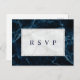 Cartão Postal De Convite RSVP de Casamento de Mármore Branco Azul-marinho