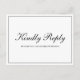 Cartão postal tradicional de RSVP de casamento, em preto clássico e branco, com um design simples com "Resposta Rápida" num dentro de caligrafia elegante de uma fronteira fina. O backside tem uma modelo para a resposta, a escolha de refeição e o endereço de retorno para uma fácil correspondência. Esta design de classe é perfeita para um casamento formal.