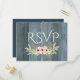 Cartão Postal De Convite RSVP Floral Russo de Madeira Rosa e Verde