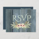 Este RSVP floral, cor-de-rosa e verde, é um design de tirar o fôlego. Ilustrado com um fundo azul de madeira e um adorável design floral rosa e verde, o verso apresenta uma cor azul escura com texto verde. Personalize o seu hoje! Plano de fundo e Clipe Floral: Trabalho de arte criado por: AMBilustrações http://www.etsy.com/shop/AMBillustrations