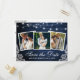Cartão Postal De Convite Rustic Blue Wood Lights Lace 3 Foto Salvar Data
