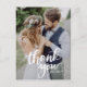 Envie obrigados para a família e amigos por fazerem parte do seu dia especial com este obrigado fotográfico que você postais. Ele contém letras brancas de pincel. Personalizado acrescentando seus nomes, data do casamento, obrigado da mensagem e foto. Este obrigado rústico e moderno que você faz do postal também será para graduações e eventos semelhantes. Disponível como cartão dobrado, cartão plano e cartão postal.