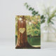 Cartões de resposta ao casamento da primavera com uma bosque romântica de madeira e frentes de lakefront com uma árvore vermelha de morango, talhados com a palavra "rsvp", lanternas e modelo de resposta ao casamento moderno.