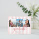 Certifique-se de que todos os seus amigos e parentes serão capazes de comemorar a graduação do marco da sua filha! Envie este cartão postal estonteante, simples, moderno, feminino, personalizado com três fotos "Salvar a Data" para um evento a ser lembrado. Um roteiro de tipografia rosa dourada cintilante sobrepõe um fundo rosado e listrado branco com minúsculos pontos cor-de-rosa e dourados. Adicione três fotos da sua escolha e personalize o texto personalizado com o nome, o nome da escola e a data do seu formando. Sua mensagem personalizada, um ícone de boné de formatura ouro rosa e seu endereço de retorno, estão na parte traseira. Convites de encontro, cartas de agradecimento, bonés, guardanapos, pratos e outras vestimentas de graduação também estão disponíveis nesta coleção de tendências e na moda. Garantido para adicionar diversão na moda à sua ocasião especial! Basta digitar o nome do seu formando, escola, data, mensagem personalizada, adicionar suas fotos, e você pode personalizar facilmente este cartão postal de lançamento "Salvar a Data" de graduação. Por favor, me mande mensagens com quaisquer perguntas ou solicitações.