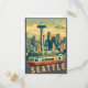Uma ilustração de cartão postal, no estilo vintage, que evoca o charme e o caráter de Seattle, Washington.