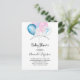 Para um chá de fraldas revelador de gênero. Um fundo branco chic. Decorados com balões azuis, cor-de-rosa e brancos. Personalize e adicione o nome da mãe a ser e os detalhes da festa. O nome e o texto: Chá de fraldas são escritos com um script de estilo com letra manual. Traseiro: design postal. Dica: Se você não quiser que pareça um cartão postal, clique em personalizar, vá para o verso e remova o divisor e o carimbo de posto.