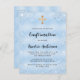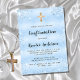 Para uma confirmação, comemorando um menino. Um fundo metálico azul falsa. Decorado com poeira azul esmaecida. Personalize e adicione o nome e os detalhes. O nome e a confirmação são escritos com um script de estilo manuscrito