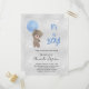 Cartão Postal De Convite ursinho chá de fraldas azul