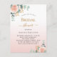 Um fundo rosa de ouro e gradiente branco. Decorados com ouro-rosa e flores cor-de-rosa, flores rosa e folhas de eucalipto, borras, verde e borras de ouro. Personalize e adicione o nome da noiva a ser e os detalhes da festa. Letras pretas e ouros coloridas. Fundo: rosa dourado.