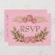 Mande um RSVP adorável usando este design floral rosa e verde. Com um design floral cor-de-rosa e verde no topo e no fundo, o "RSVP" é escrito em texto verde complementarmente ousado. A parte traseira do cartão-postal contém todas as informações necessárias apresentadas por modelos. Compre o seu hoje! Design do Convite: WeddingsbyRhoadie Floral art: AMBilustrações http://www.etsy.com/shop/AMBillustrations/