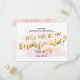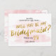 Cartão Postal De Convite Você será minha dama de honra Blush e Dourada Wate