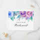 Cartão "Você será minha dama de honra?" floral roxo e azul.