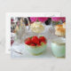 Imagem fabulosa de chantilly, chá, com scones de morangos e creme coagulado, porcelana vintage e rosas rosa.