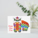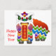 Feliz baile de leão chinês de ano novo com roupas coloridas tradicionais segurando um cartaz ou rolando torcendo todos os Excelentes Fortuna, riqueza e prosperidade Ilustração festiva e desenho postal