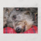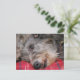 Cão escocês de Deerhound em um travesseiro de xadrez.