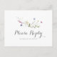 Este cartaz colorido de cardápio selvagem de escolha rsvp é perfeito para um casamento rústico. O design apresenta uma aquarela pintada manualmente, lindas flores rosa, pincéis, azuis, marinhos, amarelas, roxas e verdes selvagens.