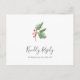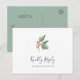 Esta opção de cartaz RSVP de Natal é perfeita para um casamento de dezembro. O design de férias de inverno apresenta um galho verde-aquoso de cor verde-úmida com ranhuras de groselhas vermelhas clássicas. Este cartão postal de resposta do casamento pergunta aos convidados qual refeição eles gostariam na sua recepção.