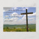 Cartão postal com cruz cristã e escritura. Envelope em branco com fotografia panorâmica e texto personalizado. O versículo de exemplo é de 1 Coríntios e diz: "Pois a mensagem da cruz é loucura para os que estão perecendo, mas para nós, que estamos sendo salvos, é o poder de Deus". O verso é deixado em branco para ser usado por qualquer motivo. As montanhas são visíveis de onde esta cruz de madeira se encontra em uma colina com uma bandeira americana na base.