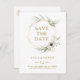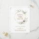 Este cartão postal de eucalipto dourado geométrico save-the-date é perfeito para o seu casamento elegante boho. É projetado com simples flores de anêmona brancas e roxas boêmias, folhas simplistas de água-marinha verde-água e molduras de inverno modernas em folha dourada. Com a combinação de flores brancas e folhagens rústicas simples, você certamente criará a atmosfera dos seus sonhos.