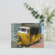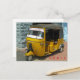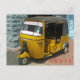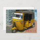 Uma fotografia de fecho de um rickshaw de automóvel na Índia impressa num cartão postal.