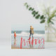 Esta é uma placa de posto de fotos de natal com mensagem de saudação escrita por pincel.
