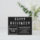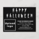 Horror, assustador, assustador, assustador, fantasma, monstro, crânio, abóbora, etc. Feliz Dia das Bruxas! Feriado para assustar, mas não para assustar clientes ou clientes. Feriado para comemorar este mês de outubro e anunciar também o seu negócio. Cartão postal de feriado personalizável que você pode colocar em sua marca de negócios e com saudação de Halloween. Personalize-o e use-o para receber aos seus clientes ou clientes este Halloween. Você também pode usá-lo como material de marketing para anunciar sua empresa ou para promover seu nome de marca. Cartão postal de feriado personalizável que você pode usar para criar reconhecimento de nome de marca. As cores design são textos brancos sobre fundo preto. Para personalizar este cartão postal, digite seu nome comercial, endereço, número de telefone, e-mail, site ou página de mídia social e carregue o logotipo de sua empresa. Após digitar textos e carregar logotipo, verifique a aparência. Se a aparência lhe agrada, você pode colocar seu pedido agora. Se você precisar redimensionar e mover os textos e o logotipo para o ajustado neste cartão postal, troque a ferramenta design. Você também pode alterar o estilo da fonte, a cor da fonte e a cor do plano de fundo na ferramenta design. Você também pode adicionar imagens e textos no verso da ferramenta design. Feliz Dia das Bruxas! Desejo mais vendas para você neste feriado.