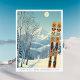 Olá das montanhas nevadas de Snowbird, Utah, EUA! Esperamos que esteja tendo umas ótimas férias de esqui. Este cartão-postal apresenta uma linda paisagem de montanha de cinzas azuis com conselhos de esqui retrorados em um padrão tribal laranja. Todas as frases de texto podem ser personalizadas para você!
