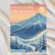 Montanhas nevadas de Mount Sunapee, New Hampshire, EUA! Esperamos que você esteja tendo umas férias de esqui maravilhosas. Este cartão postal apresenta uma paisagem montanhosa azul-acinzentada deslumbrante diante de um céu amarelo alaranjado.