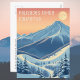Montanhas nevadas de Palisades Tahoe, Califórnia, EUA! Esperamos que você esteja tendo umas férias de esqui maravilhosas. Este cartão postal apresenta uma paisagem montanhosa cinza-azulada deslumbrante diante de um céu amarelo laranja.