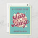 San Diego California Retro Vintage Design com uma bola de disco a rosa e matizes de pêssego de damasco. Este belo cartão postal é um cartão de boas-vindas perfeito para residentes de San Diego, visitantes, turistas ou fãs.