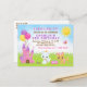 Adoráveis gatinhos gatos mimados princesas sentadas ao lado de um castelo rosa com balões de festa rosa, amarelo e roxo. Há guloseimas e brinquedos por perto, como uma tigela de água e ossos de peixe.
