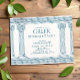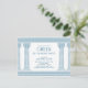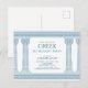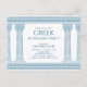 Convite de festa de aniversário com toga grega ou romana elegante com pilares de templo minimalistas e padrão meandro grego em azul. Produto personalizável para uma celebração memorável. Perfeito para a sua festa temática de Grécia Antiga ou Roma Antiga.