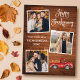 O Cartão-postal de Natal Feliz Dia de Ação de Graças 3 com Colagem de Fotos do Script Moderno de Caligrafia inclui Fita de Artesanato Laranja e Caminhão Vermelho Vintage com Watercolor com Pumpkins. Madeira russa do campo.