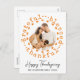 Este cartão russo de Ação de Graças apresenta um fundo branco e uma foto circular em uma coroa feita de palavras: agradecido, abençoado, grato, e alguns símbolos bonitinhos de Ação de Graças como o peru cozinheiro e a torta de abóbora. O quadro tem uma cor laranja clara, que corresponde à parte traseira da placa. Sob a foto, há saudações de Ação de Graças, um nome de família e um ano. O texto está em um script elegante preto / fonte rústica. Você pode facilmente criar sua própria placa clicando em Personalizar este botão de modelo e mudando os detalhes para si. Tenha um Feliz Dia de Ação de Graças!