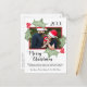 Estes cartões-postais festivos fofos apresentam sua foto em uma moldura vermelha rodeada por folhas de azevinho pintadas à mão e bagas. A legenda diz Feliz Natal com espaço para o ano, sua saudação especial e assinatura. O verso tem espaço para uma nota personalizada onde você pode pôr os amigos e familiares a par de todas as últimas notícias.