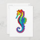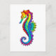 Articulação artificial, brilhante, arco-íris, cavalo de mar poligonal sobre fundo branco. Tatuagem brilhante.