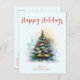 Design de árvore de Natal tradicional, mas em uma edição de aquarela para criar uma sensação agradável e quente. Celebre as férias com seus amigos e família que vivem longe de você. Ou envie-o aos seus colegas para lhes desejar Felizes Férias! Mude facilmente os detalhes para lhe agradar e você está pronto para ir. Receba esses cartões postais impressos ou faça um download instantâneo.
