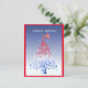 Este é um cartão de Natal patriótico para nossas forças armadas e todas as forças armadas dos EUA, assim como para aqueles que são americanos e amam os EUA. Caracteriza a bandeira americana sobre uma árvore de Natal no vermelho, no branco e no azul com estrelas.