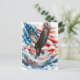 Com asas arrojadas esticadas, uma águia careca carregar a bandeira americana acima de picos de montanha vívidos. A paisagem brilha em vermelho, branco e azul, honrando o coração da terra natal. Linhas de esboço de lápis e texturas de tinta suave se fundem para formar um visual realista e inspirador. "Orgulhoso de ser americano" coroa o design com orgulho, coragem e clareza.
