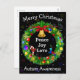 Uma bela e única coroa de Natal com enfeites coloridos de quebra-cabeça Autismo para apoiar a Consciência Autismo durante a época de Natal.