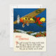 Trabalho de arte de placa de natal vintage com um poema e um avião sobrevoando a paisagem coberta de neve