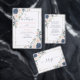 Tão bonito! Avise aos seus convidados sobre a mudança de data em estilo com este cartão-postal azul empoeirado e verde-claro cor-de-rosa, com cartaz de anúncio floral, com letra manuscrita tipografia escrita e poeira dourada suja. Copyright Elegant Invites, todos os direitos reservados.