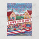 Cartão Postal De Festividades Banner de julho entre fogos de artifício festivos