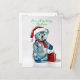 Urso de Vidro Adorável em um Chapéu Santa oferecendo um Presente belamente embrulhado. Este cartão-postal trará sorrisos a qualquer um.
